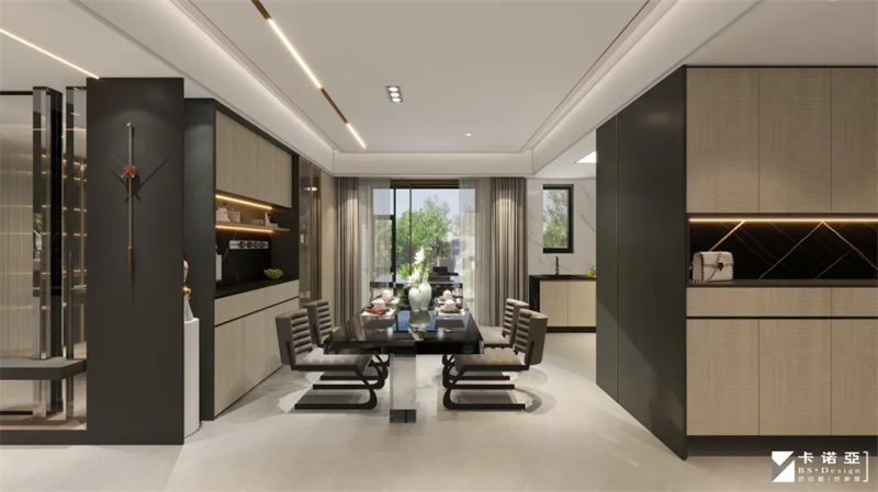 接近餐(can)桌的处所🐻设置了餐(can)酒(ji🐠u)柜,色采与全屋照应,茶色钢化玻璃柜门通透(tou)可(ke)见,能够保藏香槟与红酒(jiu)、杯具,觥(gong)筹交织,微醺糊(hu)口,是E人集会(hui)轰(hong)趴的好处所。
