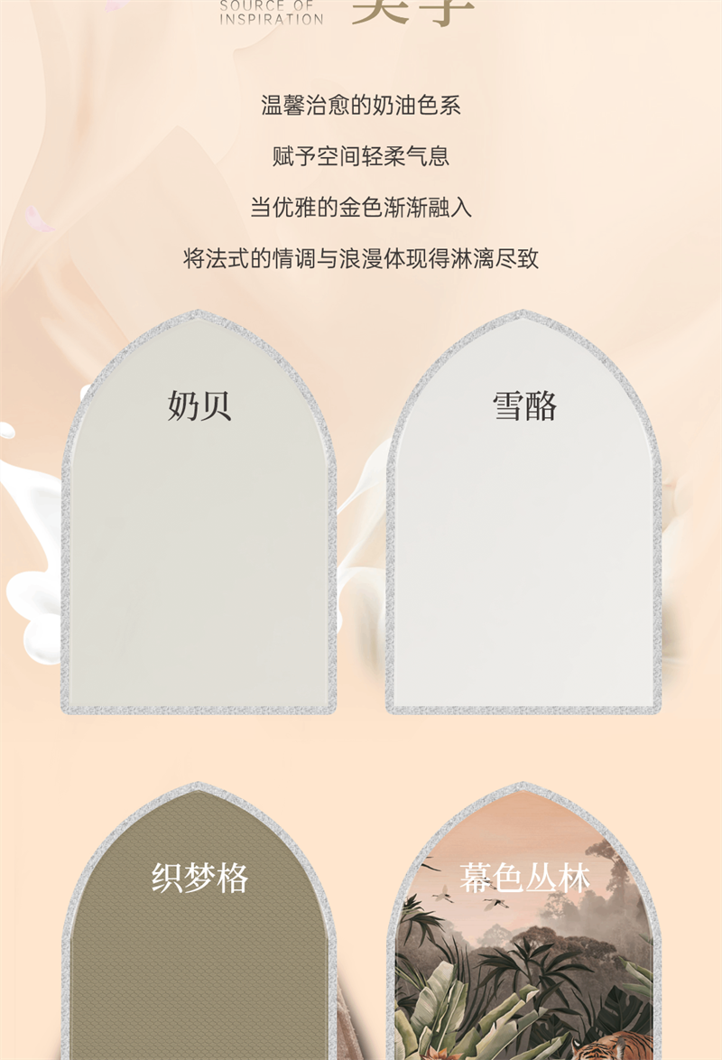 2024年新品系列,尔漫 |轻法度气概 以温婉的设想说话,描画精美浪漫法度糊口场景。系列产物全体以奶(nai)油白和金(jin)色元素为(wei)空(kong)间♔基(ji)调,将(ji♑ang)法度的气质融(rong)入古代空(kong)间,以精美细节的融(rong)入,让家成(cheng)为(wei)包容更多设想的夸姣糊口殿堂,让“美”成(cheng)为(wei)一种糊口立场。