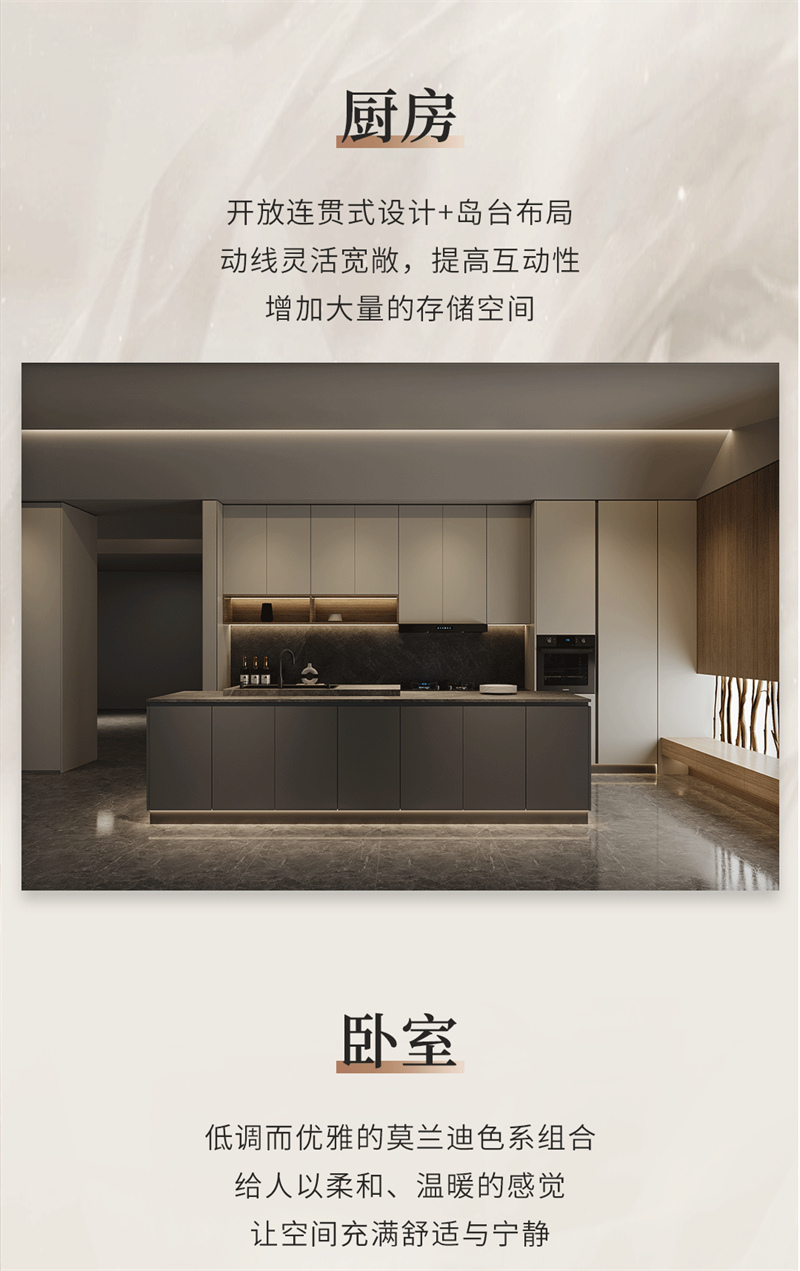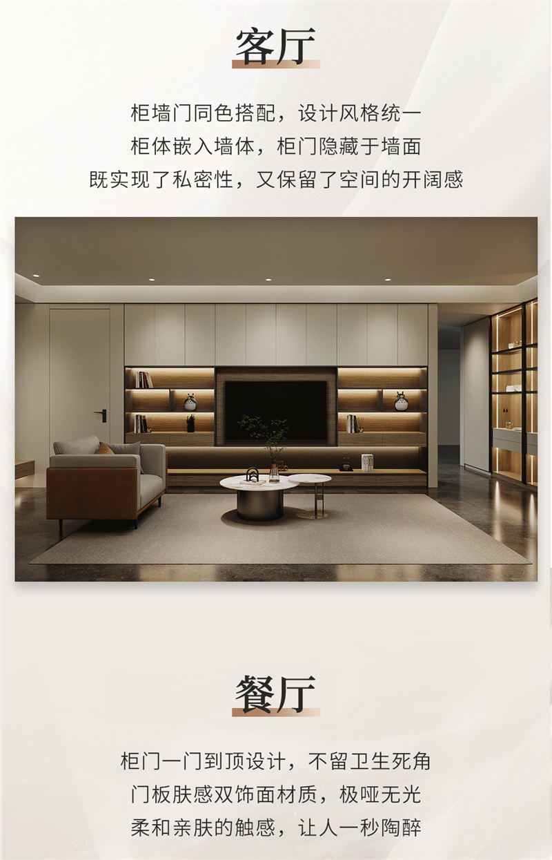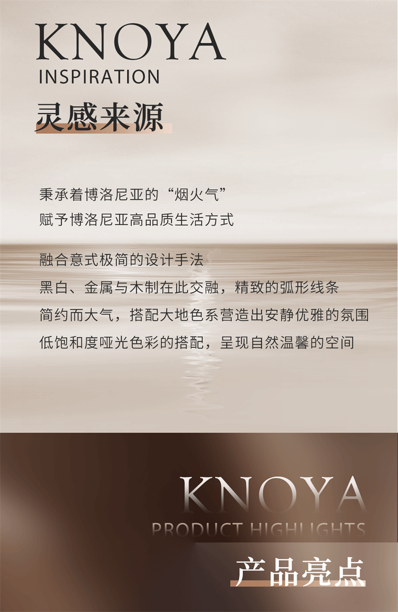 博洛Ⅱ | 极简气概质感糊口 表里兼修 有颜有质 安康环保融会意式极简的设想手段,口角、金属与木制在此融合,精美的弧形线条繁复而大气,搭配大地色系营建出宁静文雅的空气,低饱和度哑光色采的搭配,显现天然温馨的空间。