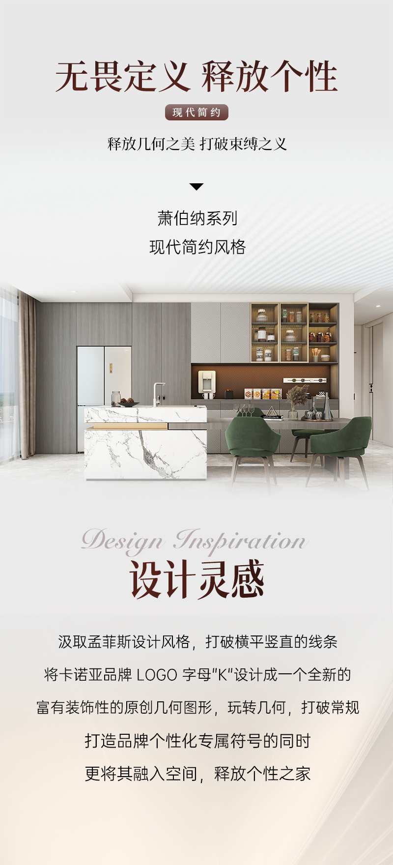 萧伯纳系列 | 古代繁复气概罗致孟菲斯设(she)想气概,突(tu)破横平竖(shu)直(zhi)的线条,将卡(ka)诺亚品牌(pai) LOGO 字母(mu)"K"设(she♔)想成一个全新的富(fu)有⛎装潢性的首创多少图(tu)形(xing),玩转多少,突(tu)破惯例,打造(zao)品牌(pai)特性化专(zhuan)属标记的同时,更将其(qi)融(rong)入空间,开(kai)释(shi)特性之家(jia)。