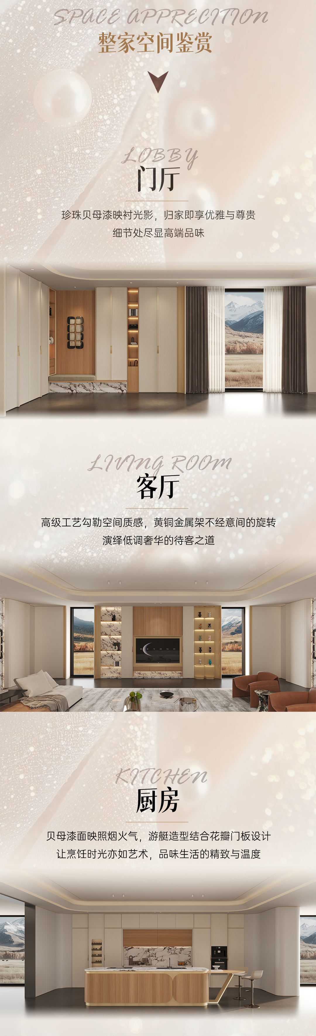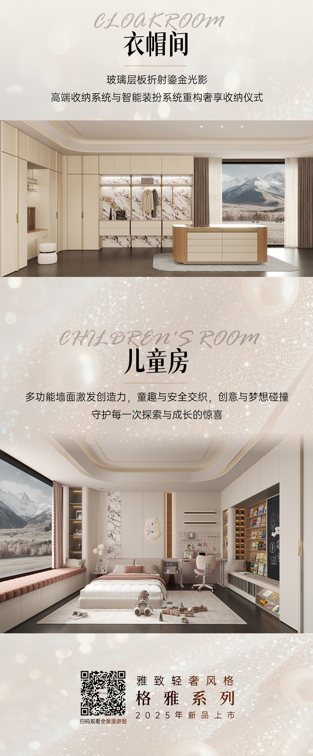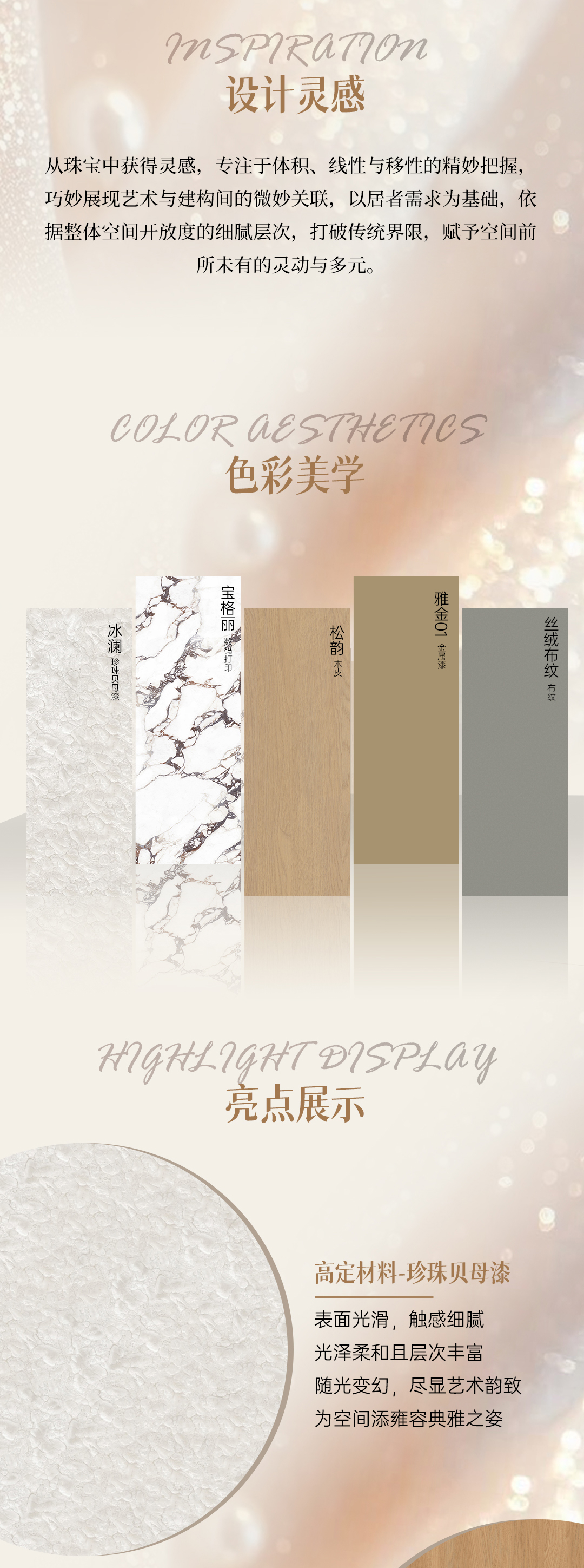 2025年新品系列,格雅系列 |高雅轻奢气概从珠宝中取得灵感,专一于体积、线性与移性的精巧掌握,奇妙揭示艺术与建构间的奥妙接洽关系,以居者需要为根本,根据全体空间开放度的细致条理,突破传统边界,付与空间史无前例的灵活与多元。🦹人群定(ding)🌱位:30至45岁艺术家(jia)(jia)家(jia)(jia)庭,对糊(hu)口品德持(chi)有极致寻求