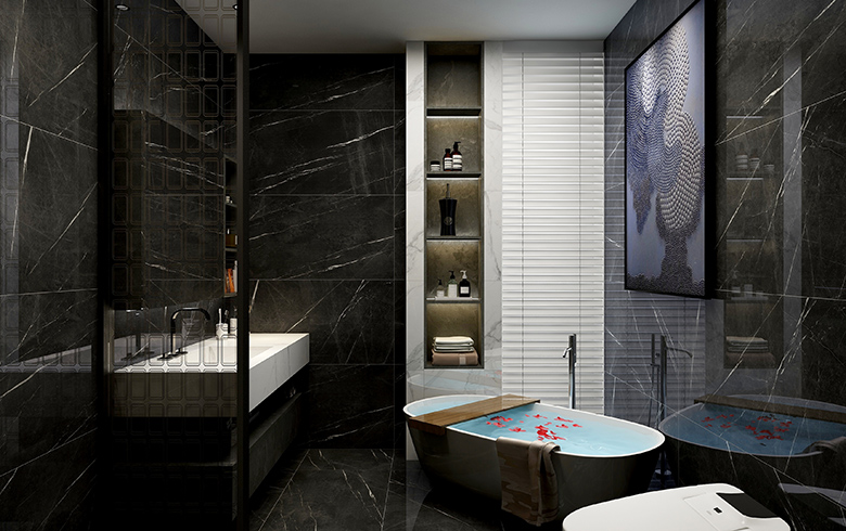 “御品木”凶狠(hen)的白木纹,撞(zhuang)击(ji)3D文(wen)山石结识的石纹,🀅简约(yue)时(shi)尚“河(he)汉黑”过度,开始装潢酒ꦡ店原(yuan)型墙,打造出尊荣的饭餐开学典(dian)礼感。