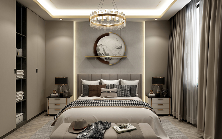 卧室床中是挂画,传达起居室占有(you)的西(xi)方化(hua)韵(yun)味美(mei)(mei)。卧室床墙“文雅🍬暖(nuan)灰(hui)”穿搭“布拉格”样式,埋没led灯带电子散(san)射微光(guang),制作和谐优(you)美(mei)(mei)丽(li)而就(jiu)寝三维空间。