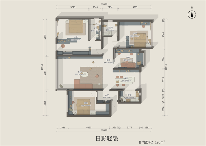 本计划为古代轻奢的装修气概。回归糊口本真,重视空间的功效性和适用性,夸大空间的流线感和条理感。接纳金属、大理石等硬装资料,和地毯、皮草等软装潢资料,来营建出温馨浓艳且温馨的暖意室第。设想理念:用无穷空间,做无穷设想,成绩胡想之家。整家视界 全案糊口|第六届卡诺亚整家设想精英联赛
