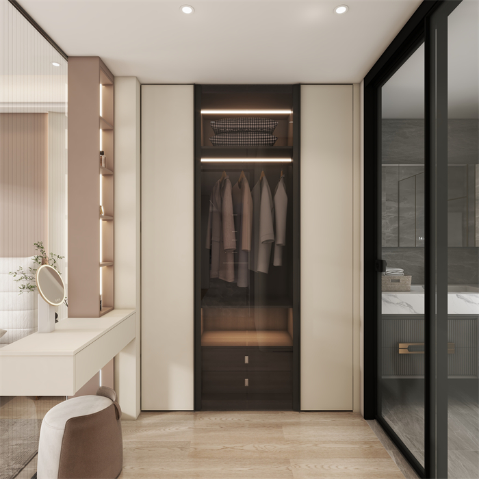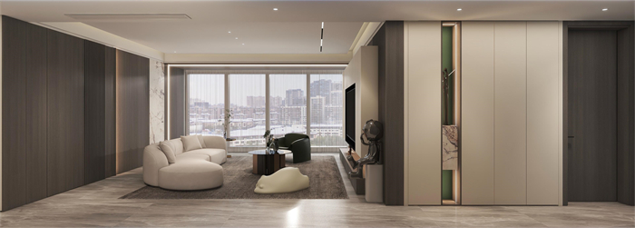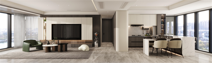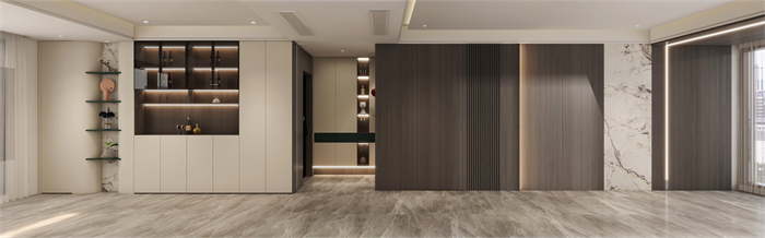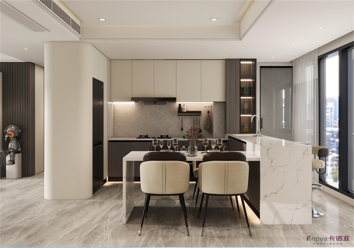 这是一个三口之家,客户是都会精英人材,对糊口布满了酷爱,对品德有着极高的请求,以是本计划首要以高等灰木纹色为主,搭配温顺高雅的水性漆雅杏,给客户营建一个接近天然,同时又不失豪华的温馨温馨的空间。厨房在原本的空间上做了一个斗胆的革新,打造了一其中西连系的开放式厨房,空间更大,功效更齐备。同时一些墙角和柜体也做了圆弧设想,动线加倍流利的同时,更显时髦和高等。