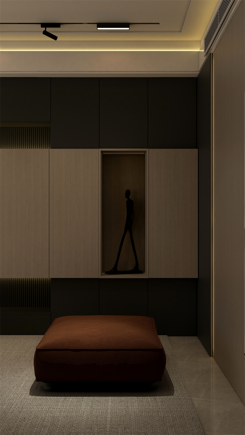 本案设想环绕业主意式极简气概的需要,主色调黑、白、灰、咖,多操纵金属色、木色、石材做出变更,装点少许素净色。柜墙门一体化,接纳交叉、进退等设想手段,共同灯光使空间简练又颇具设想美感。意式极简气概删繁就简,阔别统统浮华和不适用,从糊口实质动身,以极简的设想归纳出最实质的轻奢美学。设想理念:咱们要晓得,设想师不是给业主设想糊口的习气,而是设想习气的糊口。整家视界 全案糊口|第六届卡诺亚整家设想精英联赛