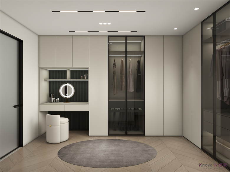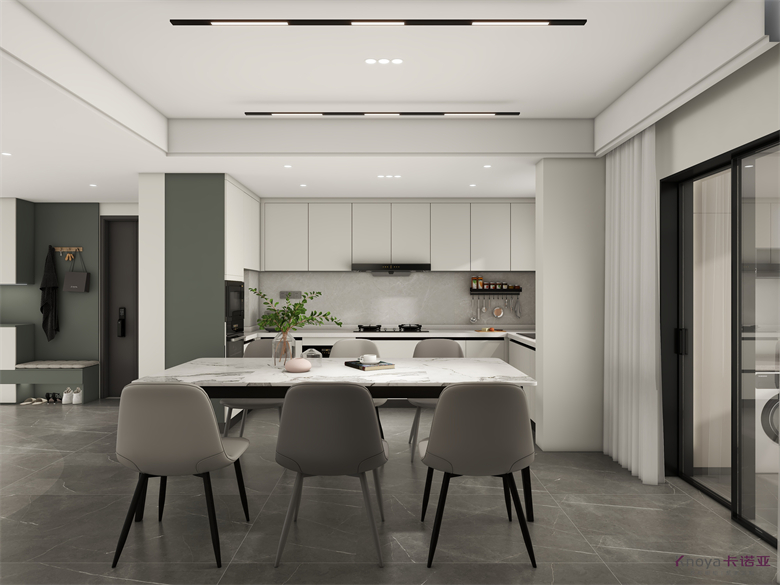 作品先容:空间以简练明快的淡色为主,无主灯的设想,极简中又不失浓艳,显现敞亮清洁的美,再用小面积辅以敞亮的色采,凸显出空间条理。客堂的亮点在于电视背景墙,底下镂空的设想比拟少见,电视背景墙前面便是休闲区,收纳柜和鞋柜跟尾构成一个全体。餐边柜和入户玄关跟尾,入门便是风光。开放式厨房和餐厅,让空间看上去加倍宽阔。主卧青绿色装点,增加条理,衣帽间打扮台一体,L型衣帽间将空间分红两块,防止了洗手间对着床的景象。次卧阳台休闲区,有着一整面的收纳柜,能够看书,也能够文娱。床背景高低分段,加上灯带增加空气感。书房镂空玻璃门木门真假连系。