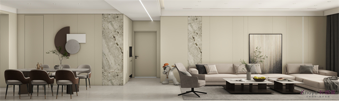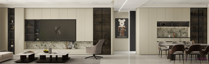 作品简介:家人的幸运糊口,从一个温馨、温馨的情况起头。我的作品向大师展现的是一个轻松、浪漫,布满繁复气概的设想。以浓艳的米色为主调,配上安好的暖色系护墙板,让空间显现出一种安好、致雅的氛围。浅灰色地砖暖和色系家具的搭配,使全部家居都显现出低调而又不失咀嚼的质感。石纹与纯色的搭配,石材、金属、灯光、软装的装点,主次清楚的设想手段,从点到面让全部空间质感拉满。