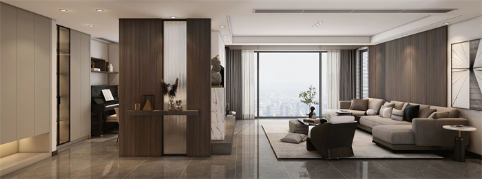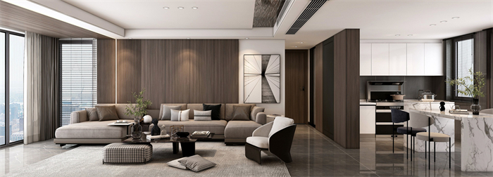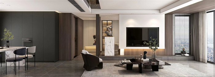 作品简介:本作原规划是规范小四房,入户斗室间改成交互式客餐厅一体,使得全部空间加倍开放通透。动身点为表现出全部空间的联贯性和交互性。全案利用了色块面积较大的“棕丝木”。木纹细致愉快,连系卡诺亚专属专利扣线,无胶装置,海棠角完善细节显现。全体深色木纹系作为主线,纯色块漆面材质作为装点,小比例艺术玻璃等;各材质调和利用。设想理念:以此为生,忠于此道;追赶本真,坚持酷爱。从需要动身,做有温度有魂灵的人居空间。整家视(shi)界(jie) 全案糊口(kou)|第六届卡(ka)诺亚整家设想精英联赛