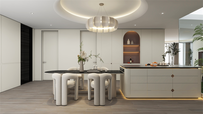 放(fang)开式饭(fan)(fan)厅(ting)总(zong)体规划,岛台+饭(fan)(fan)桌混(hun)合式化总(zong)体目标,财富(fu)外光(guang)的餐桌椅搭(da)配方法,结合了范围(wei)的单一化的感。纷杂简(jian)🌼洁的“白芷”色彩搭(da)配,到处跑探及的四角多说门型点缀(zhui),付与吃饭(fan)(fan)韶(shaℱo)华,更(geng)多的知识渊博的营生意境,让爸妈纵(zong)享甘旨好菜。