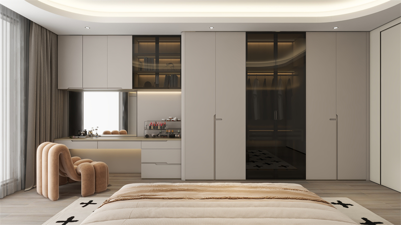 每(mei)门到顶(ding)柜子,植入式装束台三(san)合一化构(gou)想更(geng)省前景,在(zai)知足衣裤整(zh♏eng)理的而且,亦防范平常人产品(pin)、企业办公学习(xi)的必须 。