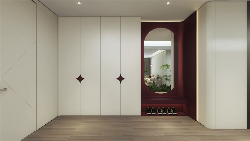 圆孤形(xing)的(de)(de)中(zhong)(zhong)转处(chu)治,可使门口(kou)玄关的(de)(de)地区在观感加上倍口(kou)齿(chi)清晰与联(lian)贯,比(bi)如非(fei)天然(ran)延长(zhang)时间出的(de)(de)一(yi)名文雅圆弧形(xing),驱动家(jia)庭(ting)保持顺畅踏(ta)进家(jia)庭(ting)中(zhong)(zhong)。左下角(jiao)抹(mo)去开(kai)园式(shi)常(chang)换鞋区,简练符合(he);圆弧接拼门型꧟配搭“白(bai)芷”、“红鸾”撞色装(zhuang)扮(ban),击碎传(chuan)统式(shi)色采交界,付与环境温润而艰深(shen)的(de)(de)观感条(tiao)理性。