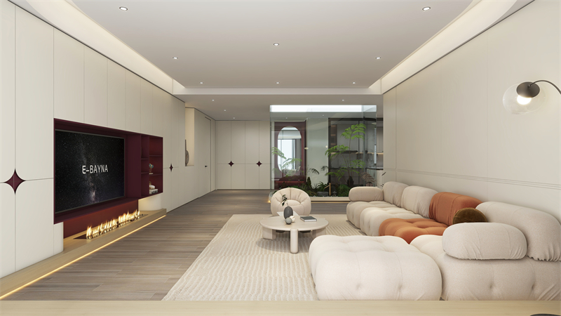 浮空电视(shi)台(tai)柜撞色思(si)路,如何搭配弧(hu)状裁切护壁板,留存鲜奶油风祥和格(ge)调又增大些(xie)许密切配合且丰厚逻辑性感的视(shi)觉系统数♈(shu)据,让环境轻便方便。
