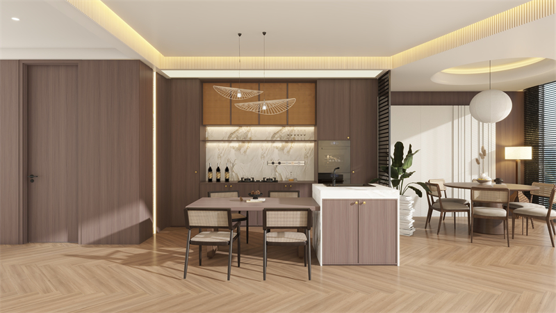 斑斓的(de)石(shi)纹金属质感(gan)(gan),与木头材(cai)质厨房厨柜健全(quan)(quan)🅰聯系,高冷接触面以下埋没着“奢(she)”维(wei)持生计。厨房厨柜+迷你型岛台+长桌(zhuo)一身化总体目(mu)标(biao),结(jie)构另一个(ge)半开馆式的(de)余地(di)设(she)计方案,多加(jia)上复旧竹藤椅及客厅吊(diao)灯,密密麻麻了(le)醉(zui)人的(de)中古装气味儿༺,让全(quan)(quan)部都热(re)空(kong)气感(gan)(gan)直(zhi)接放满(man)。