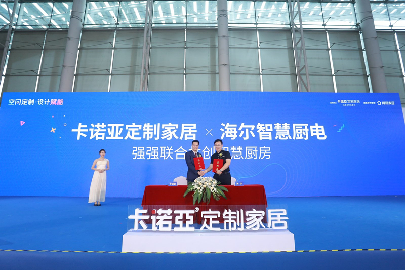 卡诺亚监事会成员长程国家标准与海尔顺逛公装总司理王健签订智谋合作和谈