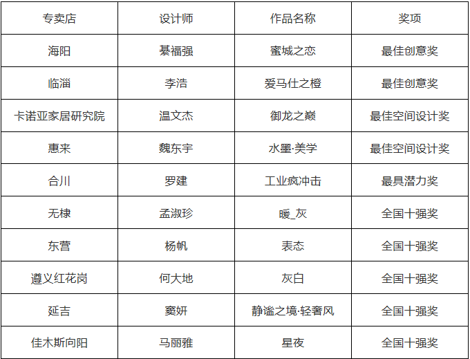 2019第2届卡诺亚杯天下网家居装饰室内空间想法大賽总联赛不错想法的团队奖名册