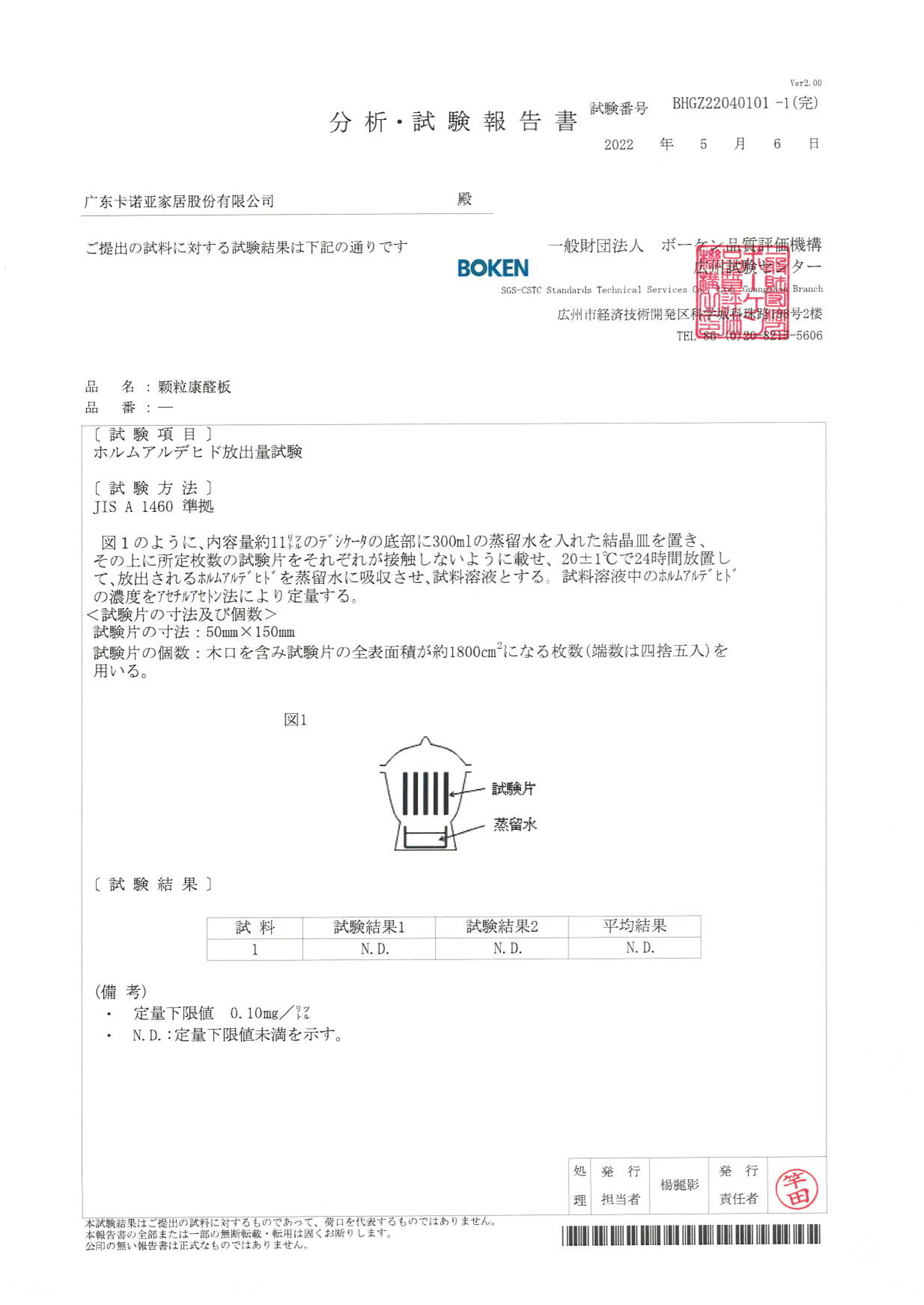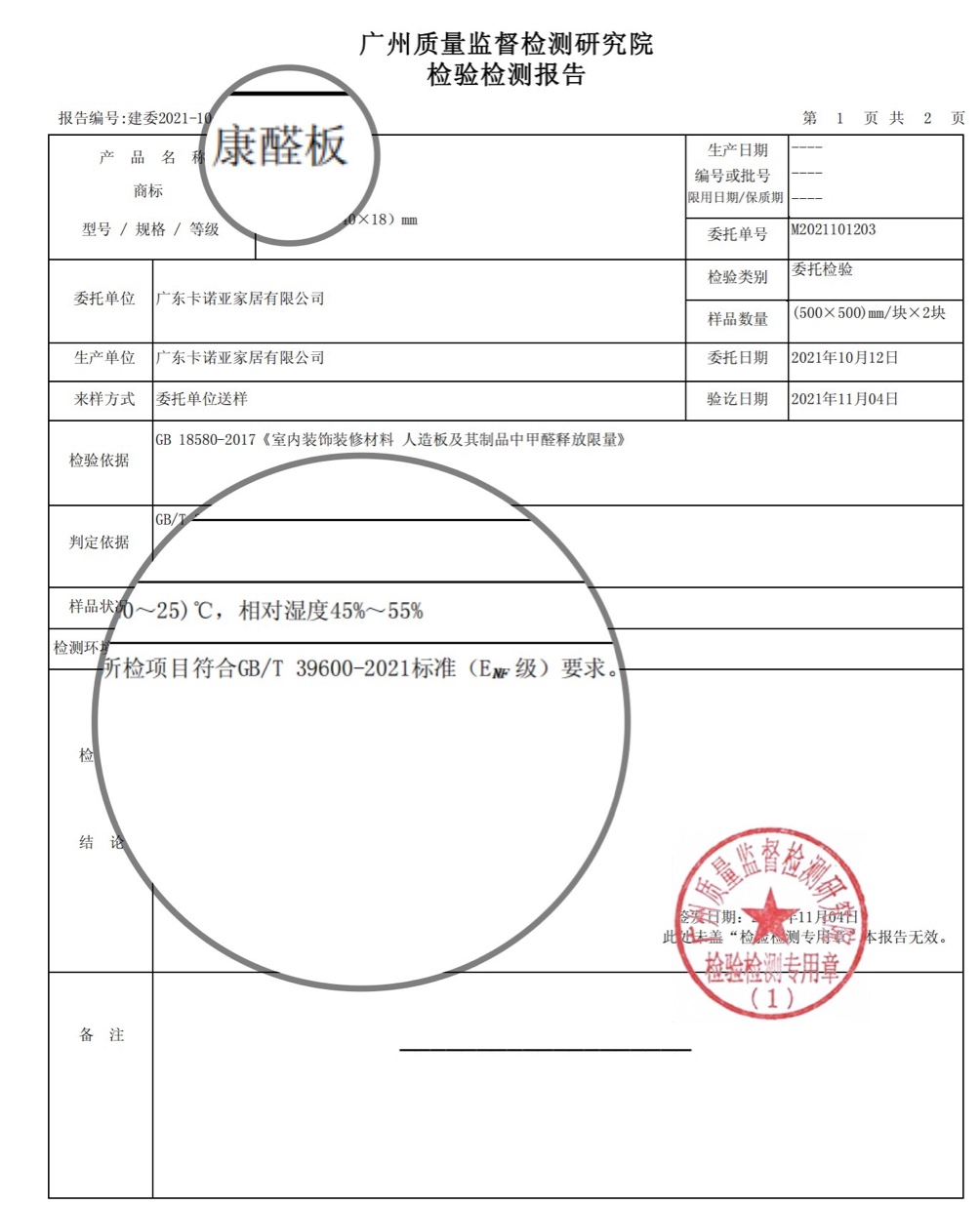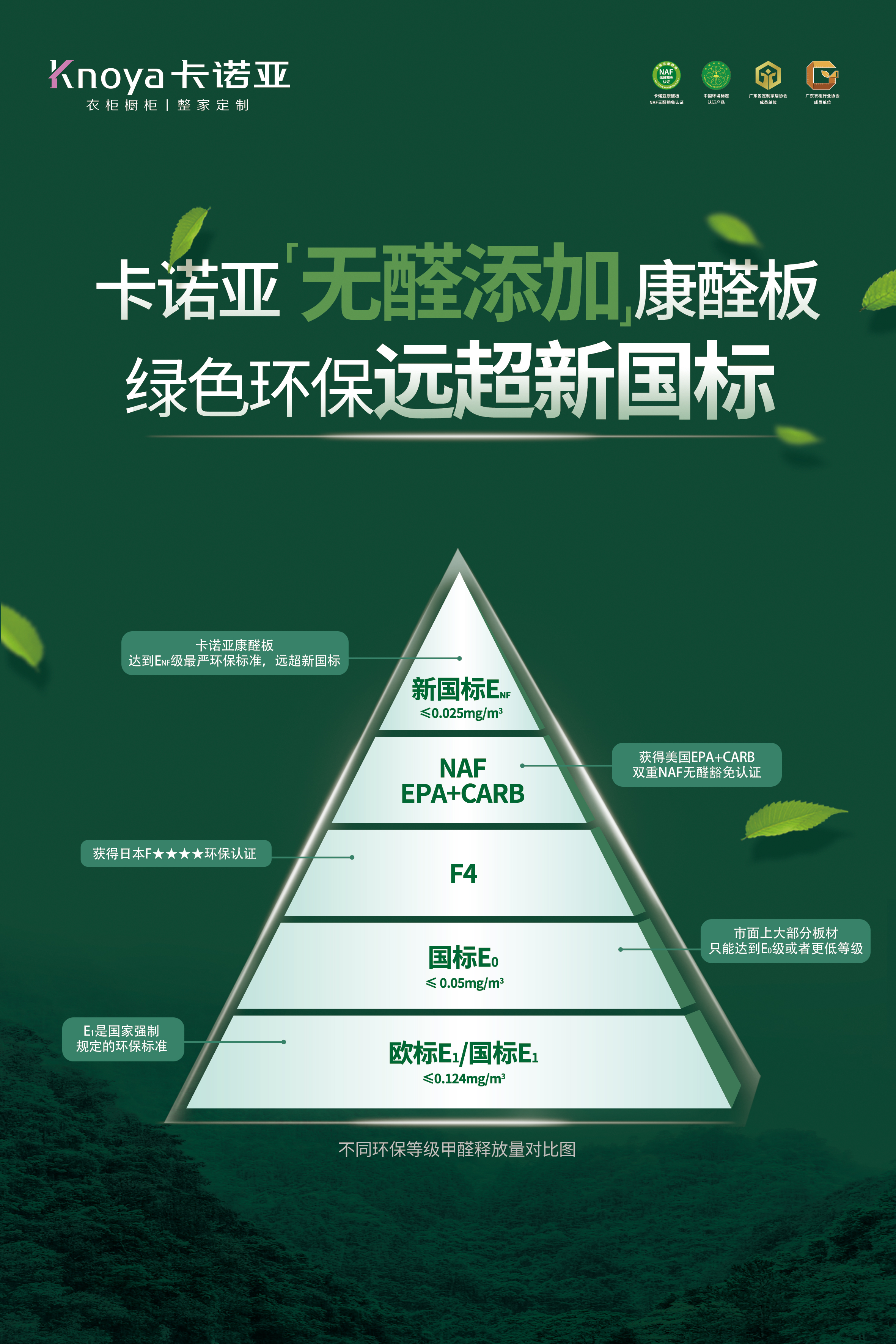 2021年10月1日实行新国标,将企业室内用天然板及其成品的甲醛开释量分为三个规范,E1级甲醛开释量为≤0.124mg/m³,E0级为≤0.050mg/m³,最严苛的ENF级为≤0.025mg/m³,国度对天然板环保品德提出了更高请求。卡诺亚推出的康醛板,经权势巨子部分检测,甲醛开释量≤0.025mg/m³,到达了环球最严格的ENF级环保规范。
